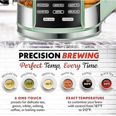$37.49 | 1.7L Gourmia Electric Glass Kettle, Green at Amazon