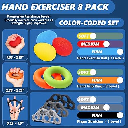 RoygraDirect via Amazon [amazon.com] has 8-Piece Roygra Forearm Grip Strength Trainer Set for $7.99.