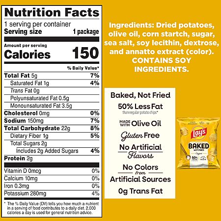 - No Colors from Artificial Sources and No Artificial Flavors: Baked Lay's Original Potato Chips are made without artificial flavors or colors from artificial sources