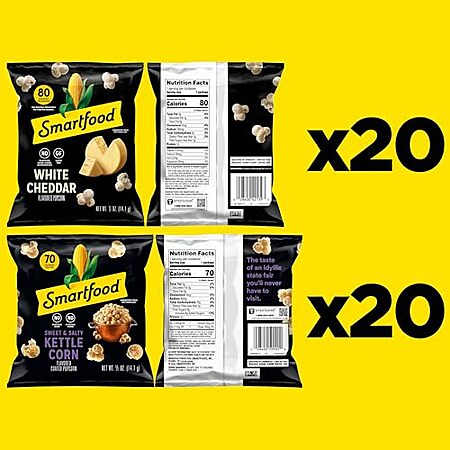 Amazon [amazon.com] has 40-Pack 0.5-Oz Smartfood Popcorn (Variety Pack) for $17.72 - 5% when you check out via Subscribe & Save = $16.83.