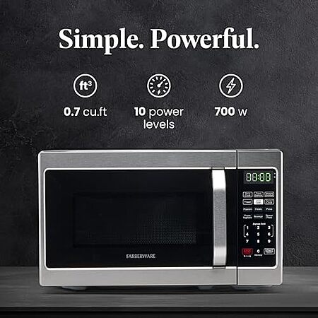 $62.99 | Farberware 0.7 Cu. Ft. Countertop Microwave Oven – 700 Watts Power at Amazon