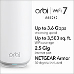 NETGEAR Orbi 260 Series Dual-band WiFi 7 Mesh Network System for Home (RBE262) – Wireless Router + 1 Extender, Security Features, 3.6 Gbps, Covers 3,500 sq. ft., 70 Devices, 2.5GB Internet Port