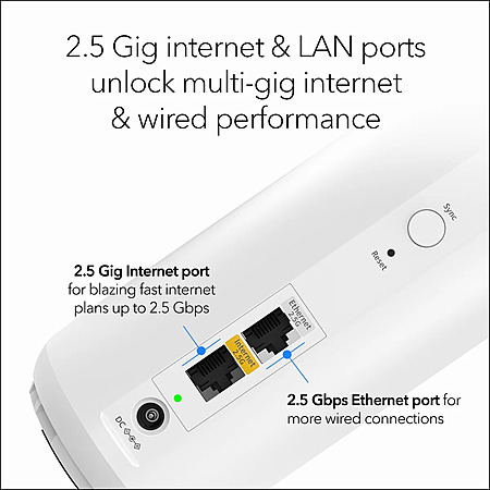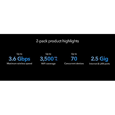 Flexible Wired: Offers a powerful 2.5 Gig wired connection or 2.5 Gig wired backhaul option for robust performance.