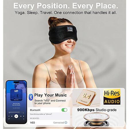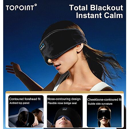 TOPOINT Blackout Sleep Eye Mask w/ Bluetooth Headphones (Various) $12.99 + Free Shipping w/ Prime or on $35+