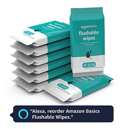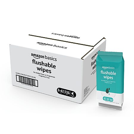 YMMV[AC,SnS]$8.23: Amazon Basics Flushable Adult Toilet Wipes, Fragrance Free, 42 Count (Pack of 8) (Total 336 wipes) (Previously Solimo)
