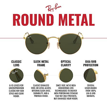 Ray-Ban Unisex RB3447 Round Metal Round Sunglasses, Gold/Black Polarized, 53 mm $152.8