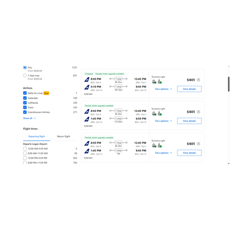 Icelandair via Booking.com have round trip airfares travelling from Boston (BOS) to Stockholm Sweden (ARN) for $401, making 1 stop in Iceland both ways for 1-10 hours (depending on the flight you choose) so plan ahead. On Icelandair, your low economy light airfare only allow a personal item and a carry-on bag.