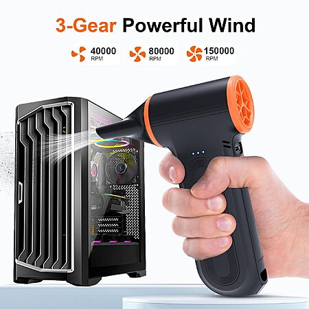 Model: JUFINX X117 Compressed Air Duster-150000RPM Super Power Electric Air Duster, 3-Gear Adjustable Mini Blower with Fast Charging, Dust Blower for Computer, Keyboard, House, Outdoor and Car
