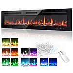 Model: EUHOMY 60 Inch Electric Fireplace Wall Recessed and Wall Mounted with Adjustable Flame Color, Fireplace Heater with Remote Control, Linear Fireplace with Timer, Touch Screen, Log & Crystal, 750/1500W