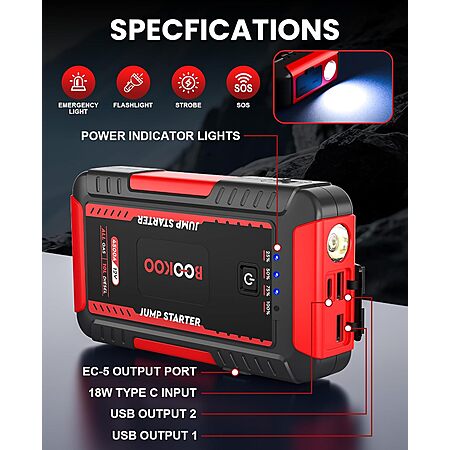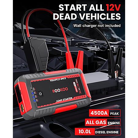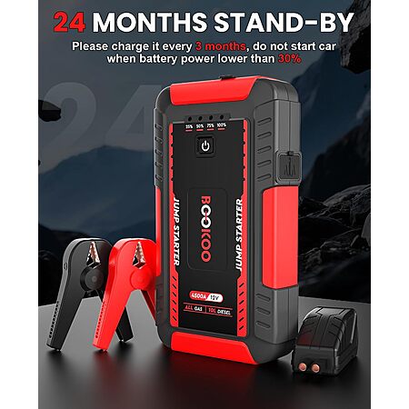 BOOKOO via Amazon [amazon.com] has 4500A BOOKOO 12V Portable Car Jump Starter w/ 20000mAh Power Bank on sale for $49.99 - 44% off when you visit the promo code page to activate [amazon.com] (or apply promo code 9PTB2J2M at checkout) = $27.99. Shipping is free.