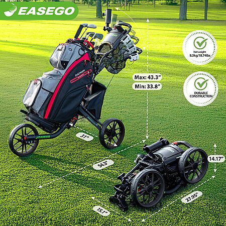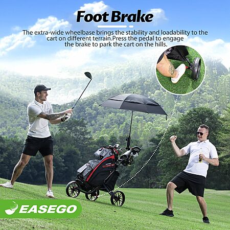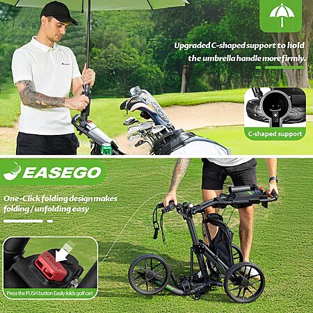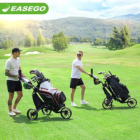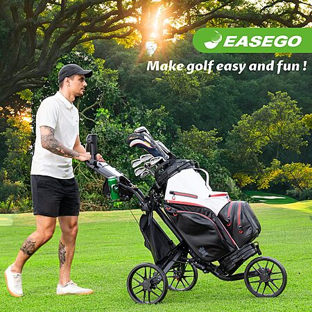 EASEGO Golf Push Cart 3 Wheel : Golf Bag Cart Foldable (Black) $159.99