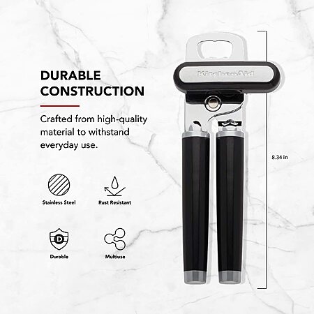 KitchenAid Classic Multifunction Can Opener and Bottle Opener Easy to Use, Razor Sharp Stainless Steel Cutting Wheel, Soft Ergonomic Handles, Black $11.98
