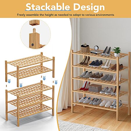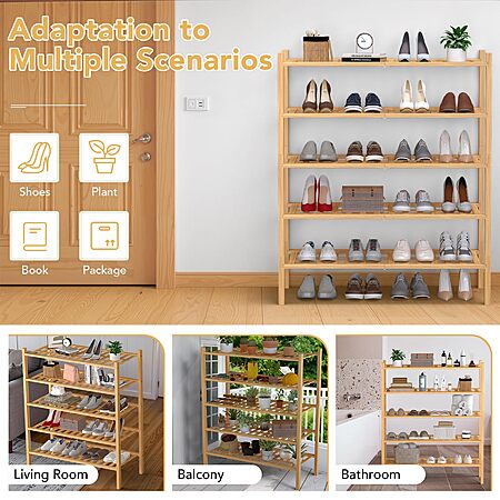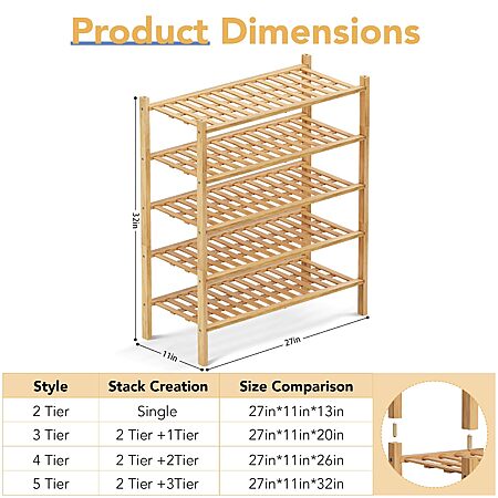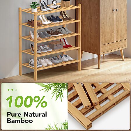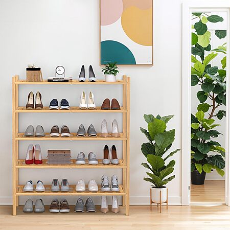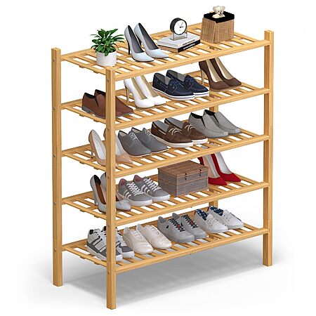 Haddockway 5 Tier Bamboo Shoe Rack Storage Organizer, 27"x11"x32" (Natural, 5 Tier) - $10.99