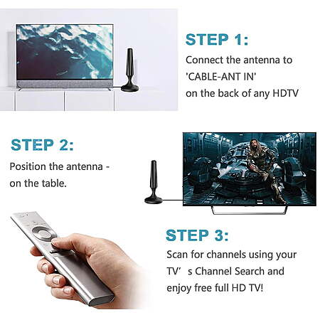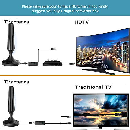 | Product Description: | No more triple-digit monthly bills! A ONE TIME purchase for less than 30 dollars can save you 80-212 dollars every month, adding up to 960-2544 dollars a year! This innovative Indoor Flat Digital Antenna is worth every cent you pay. Get local channels for free totally, including local news, weather, sports programs, kids' shows and sitcoms; Enjoy full HD 1080P/2K/4K crystal clear TV programs; Never Miss any Games and shows you like One Antenna massive HD channels tou get CBS HD、FOX HD、NBC、HSN、Me-TV、UNVISION、PBS、ESPN、The CW、Comet TV、QVC 、Nickelodeon、Grit、World Channel、ion TV、bounce tv、GetTV、PBS Kids、TELEMUNDO Item Specifications: Range:120miles with detachable amplifier Connectors:F Male,Voltage:5V Receiving range: FM/VHF/UHF/4K Cable: 2.5C-2V cable /16.4 FT Impedance: 75Ω Gain: 25dB( with amplifier)/5db(without amplifier) How Many Free Channels Can You Get? dtv.gov/maps: Find out where the broadcast towers in your area are located. Antenna Web: Discover how many FREE channels are available from your local broadcasters TV Fool: Provides lists of available channels, coverage maps, and dynamic signal analysis maps for any location. Please Kindly Be Noted! 1. If your TV doesn’t have a built-in tuner, a Set Top Box is needed to pull in HDTV signals. 2. If the signal is not satisfying or only a few channels are available, try connecting or removing the amplifier. 3. Reposition the indoor antenna in a different location. Re-scan signal every moving. It is suggested place it closer to a window. 4. The number of channels that's highly depends on the distance and location. Areas with large obstructions such in valleys, mountains,etc, or the trees and weather will reduce effective range. Full Channels: Our HD antenna can receive full HD channels like ABC, CBS, NBC, PBC, Fox and so much more. With amplified TV antenna start to access all of the news, sitcoms, kids and sports programs. Strong Signal Reception: Our technology constantly scans and filters out all kind of local signals resulting in clearer picture, low noise and access to stronger TV signals with enhanced gain, range and frequency performance. 120 Miles Range: Hang the indoor antenna on a window or wall, or a better position where owns better reception in your House. Our indoor TV antenna is able to reach up to 120 Miles range depend on the area. 16.4 Feet Customized Coaxial Cable: Makes our tv antenna easier for you to place it in your house to get the best reception, especially for customers whose televisions are quite far away from windows. Watch TV at Home or On The Go — Our versatile digital HDTV antenna works great in your bedroom, living room, or game room. It also works as a portable HD antenna in your tractor-trailer or RV on your next trip. |