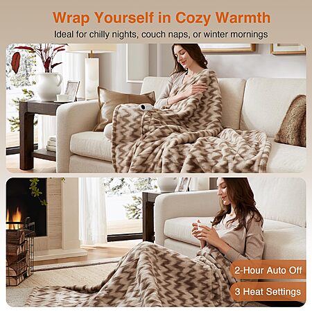 - Luxuriously Long Brushed Faux Fur electric blanket offers extra warmth for the cold winter; delivers heat ranging from 85 - 105℉ (temperature range will vary based on ambient room temperature).