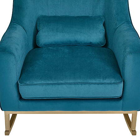 MoDRN Glam Velvet Rocking Chair w Lumbar Pillow (Teal/Satin Brass) for