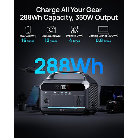 [Prime] 288Wh DARAN Portable Power Station (350W/600W Peak) LiFePO4 Battery w/ AC Outlet & 7 Ports $89.99 + Free Shipping