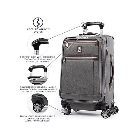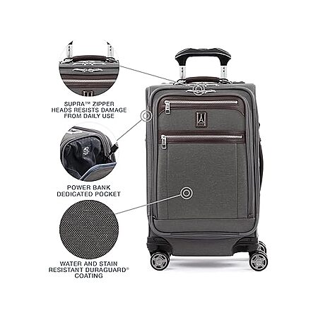 $215: Travelpro Platinum Elite 21" Expandable Carry-On Luggage, 8-Wheel Spinner, USB Port, Suiter, Vintage Grey at Woot!