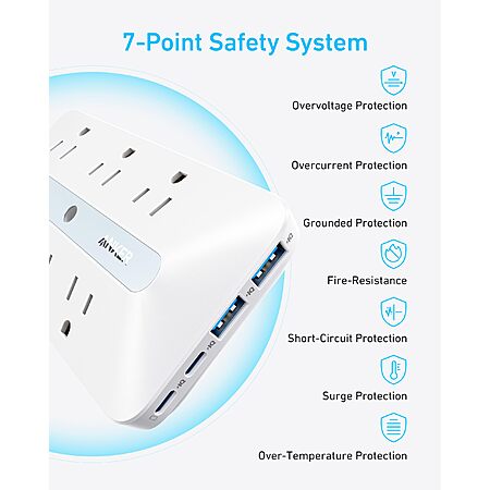 Model: Anker Wall Charger, 300J Surge Protector, 10-in-1 Outlet Extender, 6 AC, 2 USB A, 2 USB C Ports, Wide-Spaced Outlets and 20W Fast Charging, Desk Charging Station, Home Office, Dorm, Room Essential