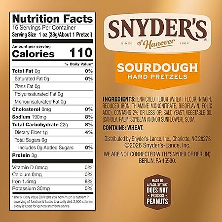 [SnS, AC] $2.34 | 16-Oz Snyder's of Hanover Sourdough Hard Pretzels at Amazon