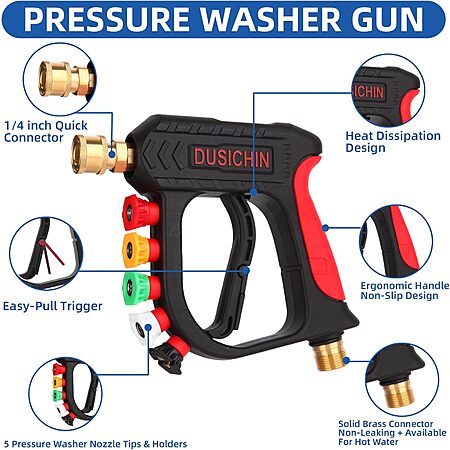 $19.99 FS DUSICHIN Foam Cannon Short Pressure Washer Gun 1/4 Inch Quick Connector,Car Wash Foam Gun with 5 Pressure Washer Nozzle Tips 3/8'' Swivel Quick Connector,, Orifice Nozzle