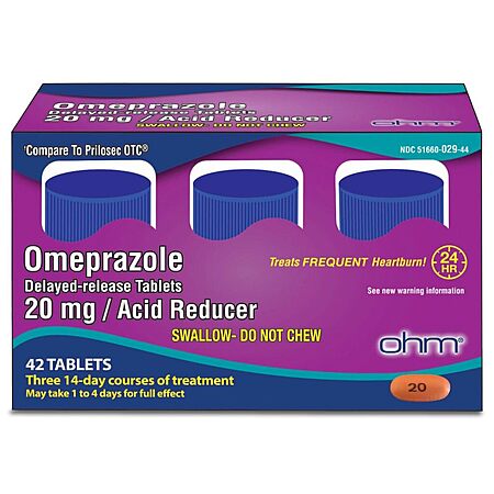Ohm Omeprazole 20mg, 42 Delayed-Release Tablets, Acid Reducer for Frequent Heartburn, 24-Hour Relief $5.85 S&S AC Amz