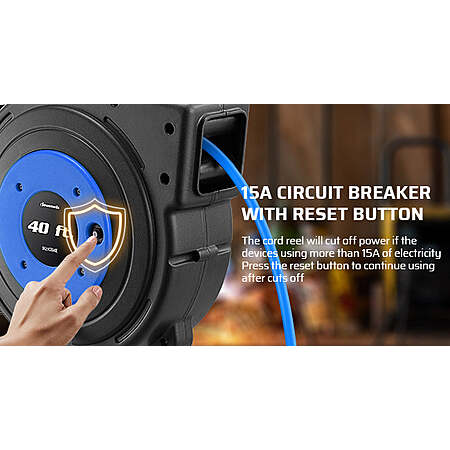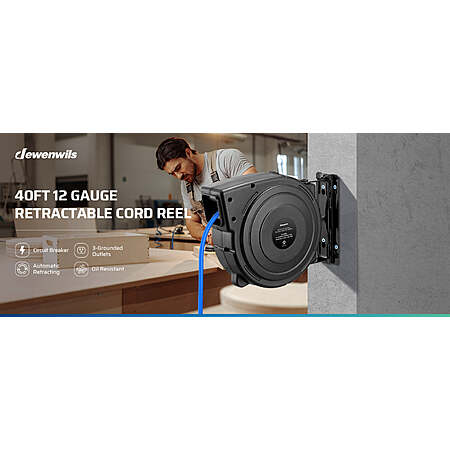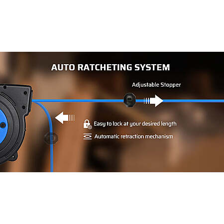 Automatic Retractable: With a clever auto-guide rewind mechanism to avoid kinks and tangles, the power cord reel will retract quickly and smoothly; the ratcheting system will lock the cord at any length; cord reel also comes with an adjustable stopper