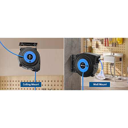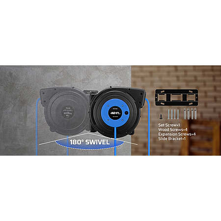 Swivel Bracket for Wall / Ceiling Mount: 180 degree swivel mounting bracket allows you to easily pull and release cord from multiple directions; the retractable cord reel can be mounted on the wall or ceiling easily