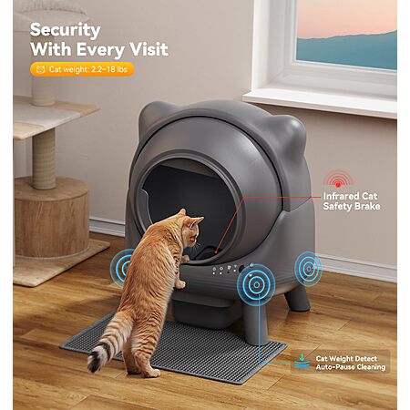- Multi-Layer Safety Protection: Infrared sensor stops cleaning if a cat enters or probes the trash bin during the cycle, ensuring safety.