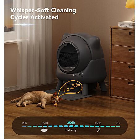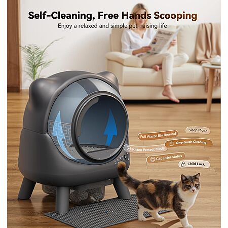 ChoreChamp Direct via Amazon.com has Self Cleaning Litter Box, Automatic Litter Box, FEELNEEDY Odor Control Robot, Cat Ears Design, 65L APP Real-Time Monitor, Cat Litter-Boxs for Multiple Cats, Safety Sensors, with 1 Trash Bag on sale for $219.99.