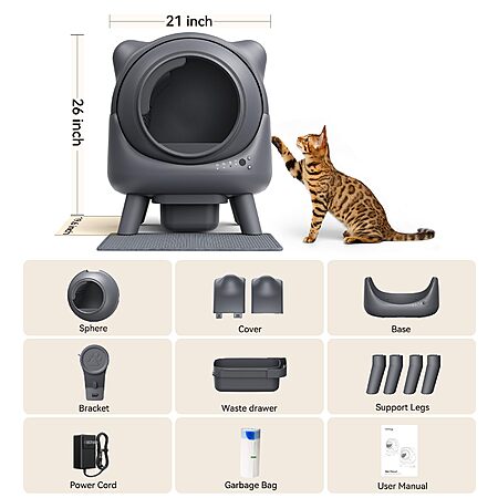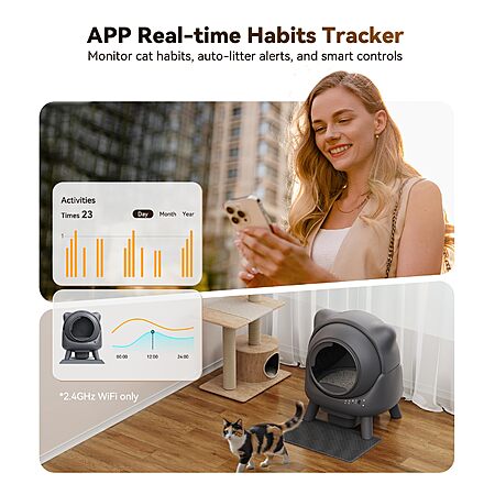 - Real-Time Tracking with APP Control: Track cat's bathroom habits, control cleaning, and get reminders when it's time to change the trash bag via the app.