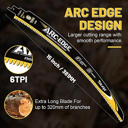 - Arc Edge Design: Curved-edge design made from premium chromium-vanadium (CR-V) steel provides exceptional durability and smooth, efficient cutting performance, ideal for demanding wood-cutting tasks. The uniquely curved shape ensures precision, improved reach, and ease of use, especially in tight or overhead spaces.