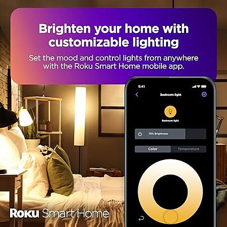 $11.50* | 4-Pack Roku Adjustable Brightness & Temperature WiFi Smart Light Bulbs at Amazon