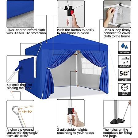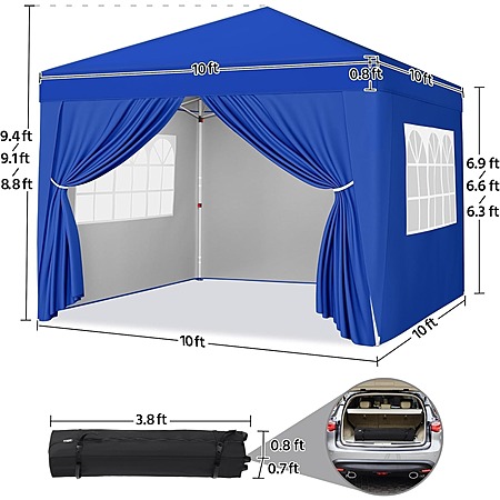 Yaheetech 10x10 Pop-Up Canopy Tent w/ 4 Sidewalls & Roller Bag (White or Blue) $90 + Free Shipping