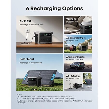 49 Min UltraFast Recharging: With upgraded HyperFlash tech, fully recharge at 1,600W—for outage prepping, camping trips, or tailgating events. Enable it in the Anker app.