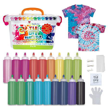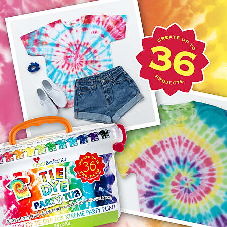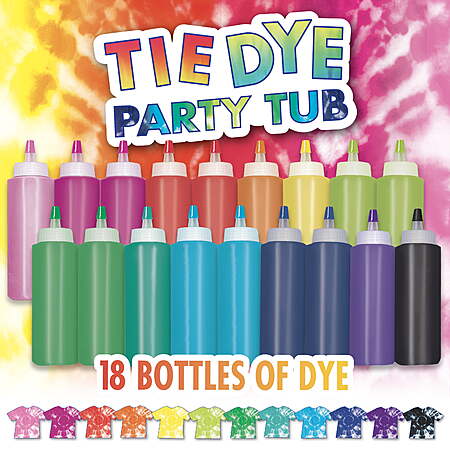 | Product Description: | Create colorful memories with the Create Basics Tie Dye Party Tub Kit, the perfect all-in-one solution for group crafting and creative fun. Designed for all ages, this easy-to-use tie dye kit features no-mess squeeze bottles—just add water, shake, and apply for bold, permanent color that lasts wash after wash. The reusable storage tub is packed with enough supplies to complete up to 56 projects, making it ideal for parties, camps, family reunions, and summer activities. With vibrant dyes, gloves, rubber bands, and step-by-step instructions included, it’s a stress-free way to bring hands-on creativity to any group event. Kit includes a reusable plastic storage bin stocked with enough tie-dye supplies to create up to 56 projects Features 18 easy-squeeze bottles of dye in 12 popular colors – just add water and apply! Best results on 100% natural fabrics Dyes are permanent Nontoxic Kit includes protective gloves, rubber bands, and instructions Perfect for large parties, summer activities, family reunions and other group activities |