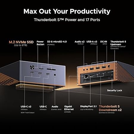 [Prime] $389.99 | UGREEN Maxidok Thunderbolt 5 Dock Revodok 17 in 1, 120Gbps, M.2 SSD Slot, 3×TBT5, Single 8K/Dual 6K, 240W Total Charging, 2.5G, SD 4.0, 3.5mm Audio at Amazon