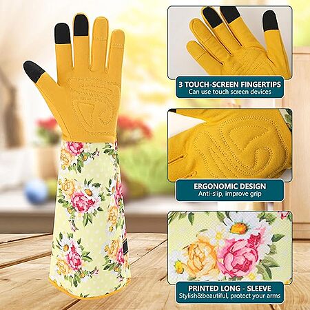 Ymomode Women's Long Gardening Gloves w/ Superfiber Synthetic Leather Palm and 3 Touchscreen Fingertips from $8.99 + Free Shipping w/ Prime or on $35+