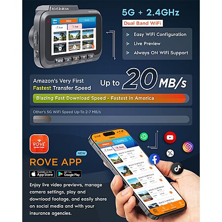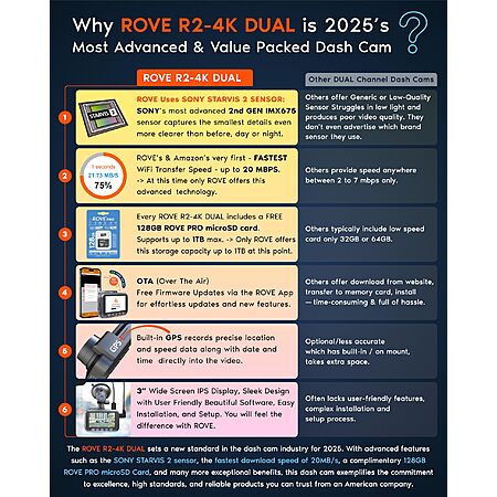 Model: ROVE R2-4K DUAL Dash Cam Front and Rear, STARVIS 2 Sensor, FREE 128GB Card Included, 5G WiFi - up to 20MB/s Fastest Download Speed with App, 4K 2160P/FHD Dash Camera for Cars, 3" IPS, 24H Parking Mode