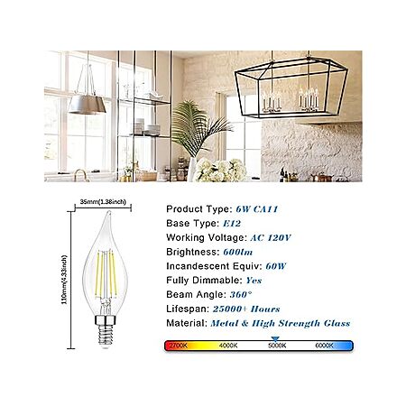 $12.74 | 12-Count TOBUSA Dimmable E12 Candelabra LED Bulbs 6W 5000K at Woot!