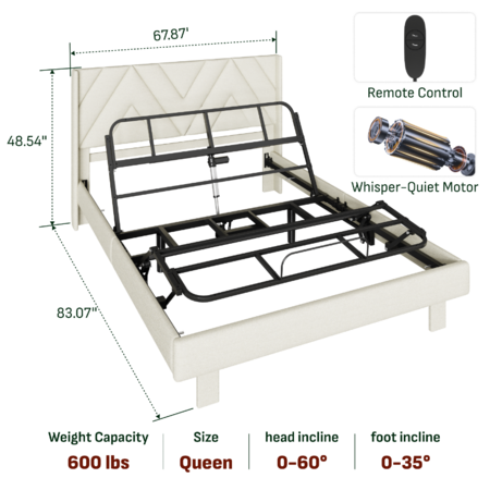 Softa Queen Adjustable Bed Set w/ Upholstered Frame + 10" Hybrid Mattress $384 + Free Shipping