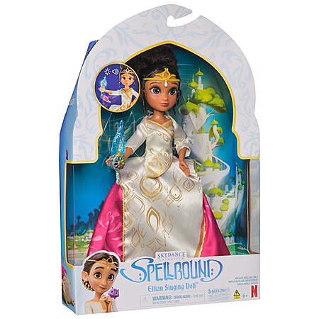| Product Description: | Experience songs and phrases from Spellbound with the Singing Ellian doll! Spellbound, a NETFLIX film from SkyDance Animation, follows the quest of Princess Ellian to save her kingdom after a mysterious spell transforms her parents, King Solon and Queen Ellsmere, into monsters. At 9.5-inches tall, Singing Ellian comes to life with realistic details, magic fob, 5 points of articulation and lights, songs and sounds from the movie! Like in the movie, Ellian wears her gown with golden details and a curled updo with a removable princess tiara and boots. Her gown’s skirt is removable for added storytelling. Kids can pose Ellian as they play, lifting her arm to activate the sounds – her fob lights up as Ellian sings 1 of 3 songs (including My Parents Are Monsters) and says 1 of 3 phrases! Doll speaks and sings in English only. Includes 3 LR44 batteries. For more ways to experience Spellbound, look for the other small dolls and fashion dolls (each sold separately)! For kids who enjoy princess dolls and dollhouse play, cute monster toys and figurines, Spellbound toys are fun birthday gifts for girls and boys, or gifts for any occasion. Expand your Spellbound world with Singing Ellian! 9.5-INCH DELUXE SINGING ELLIAN PRINCESS DOLL: Based on the NETFLIX film from SkyDance Animation, Ellian comes to life with songs & phrases, a styled updo, realistic facial details & 5 points of articulation! SINGS 3 SONGS & SPEAKS 3 PHRASES: Ellian sings 3 songs including My Parents Are Monsters & speaks 3 phrases! Pose Ellian & lift her arm to activate – the magic fob lights up as Ellian sings & speaks! AUTHENTIC DOLL CLOTHES & DETAILS: Singing Ellian wears her gown with gold details like in the movie! Her skirt is removable for added pretend play. Doll accessories include her fob, removable tiara & boots! SPELLBINDING GIFT: Spellbound dolls & accessories are fun birthday gifts & gifts for 6 year old girls & boys for any occasion. Doll sings & speaks English. 3 LR44 batteries included. TOYS FOR 6 YEAR OLD GIRLS & BOYS: Kids who enjoy dolls & doll house play, action figures, collectibles & princess dolls will love Spellbound dolls, toy figures & playsets (toys each sold separately)! Includes: 1 Feature Fashion Doll, 1 Tiara, 1 Removable Fashion Piece, 1 Pair of Boots, 1 Instruction Sheet WARNING: CHOKING HAZARD - Small parts. Not for children under 3 years. Covered by the Spin Master Care Commitment. If you have a problem with a Spin Master product that you purchased from an authorized seller, we’ll resolve it! Because Spin Master is unable to control the quality of products sold by unauthorized sellers, unless otherwise prohibited by law, the Care Commitment is not available for products purchased from unauthorized sellers. The Care Commitment is limited to the original end-user purchaser. You may also be required to provide proof of purchase and/or a picture of your product to Spin Master to verify eligibility. Spin Master reserves the right to verify information, require a valid proof of purchase, and to deny request in its discretion |