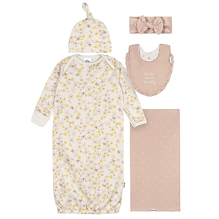 5-Piece Gerber Baby Gift Set w/ Gown, Caps, Bib, & Swaddle Blanket (0-6 Months, Various) $6.99 + Free S&H w/ Walmart+ or on $35+
