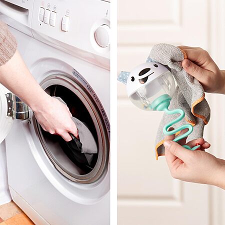 - The enhanced bounce and spin helps children develop core leg muscles, while the hanging toys encourage reaching, stretching and sitting up, coupled with a tray mirror that helps promote self-awareness