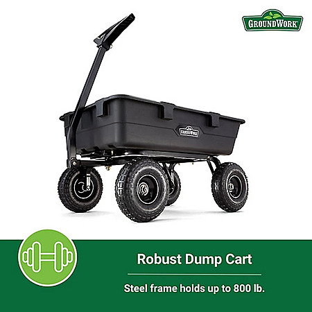 Tractor Supply Company has GroundWork 5 cu. ft. 800 lb. Capacity Towable Poly Dump Cart for $99.99. Store pickup is free.