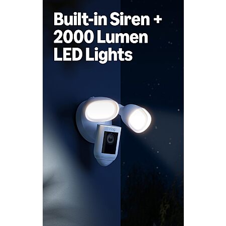 $169.99: Ring Floodlight Cam Wired Pro, Retinal 2K Video, Color Night Vision, Two-Way Talk with Audio+, Black