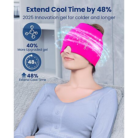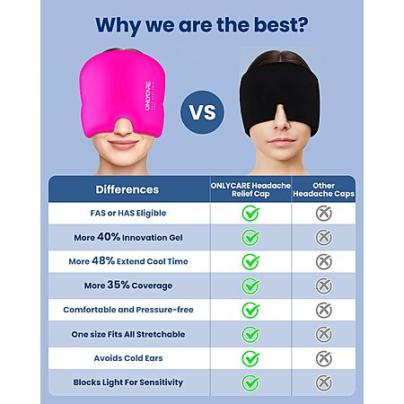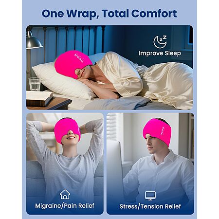Migraine Relief Cap, ONLYCARE Headache Relief Cap, Soothing Migraine Mask, Odorless Gel Ice Head Wrap, Hot & Cold Therapy, Reusable Ice Pack for Tension and Stress (ROS Red) $9.99
