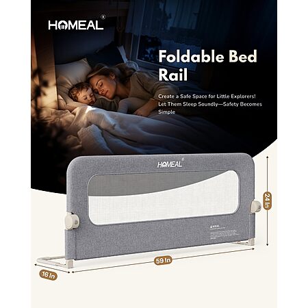 59"x24" HOMEAL Bed Rail for Toddlers, Extra Long $21.99 + Free Shipping w/ Prime or on $35+