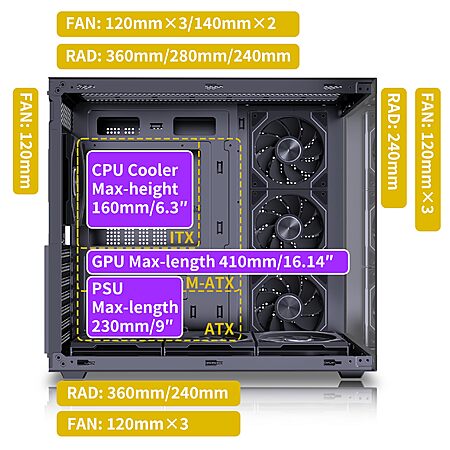MUSETEX Y6 ATX Mid Tower Computer Case w/ 7 x Infinity Mirror PWM ARGB Fans (Black) $79.99 + Free Shipping