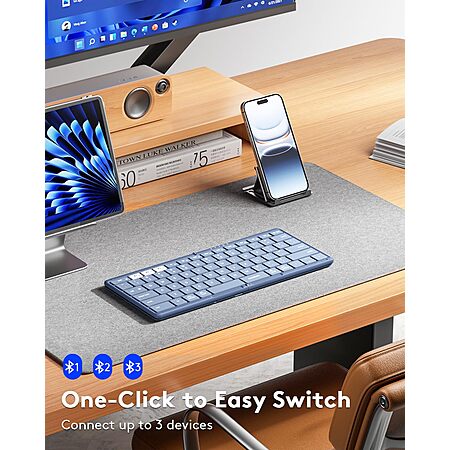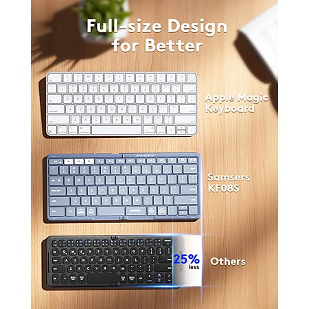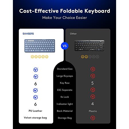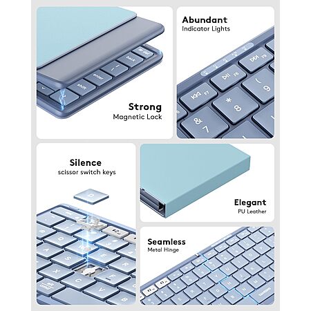 Samsers Full-Size Foldable Bluetooth Keyboard, KF08S Wireless Folding Keyboards with PU Leather Cover Blue $30.81
